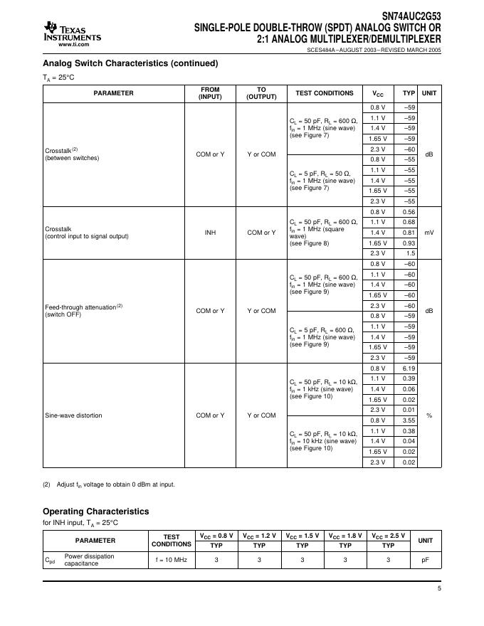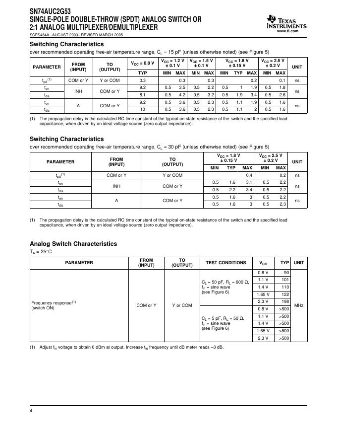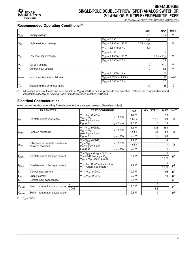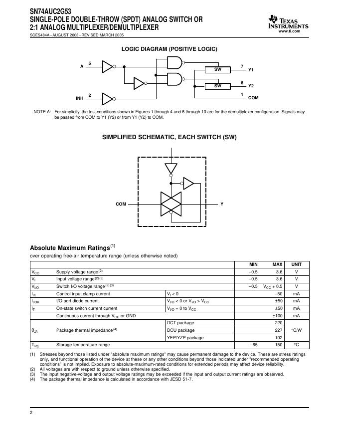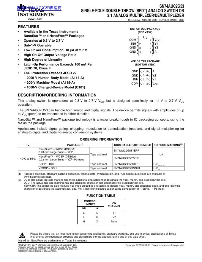 TEXAS INSTRUMENTS SN74AUC2G53 SINGLE-POLE DOUBLE-THROW (SPDT) ANALOG SWITCH OR 2:1 ANALOG MULTIPLEXER/DEMULTIPLEXER数据手册.pdf