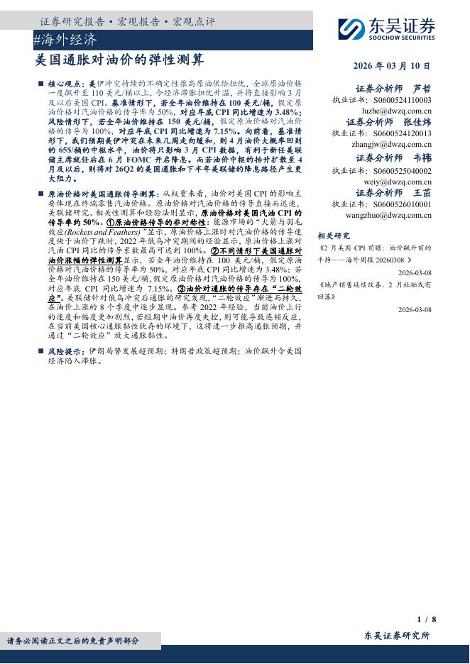 东吴证券:#海外经济:美国通胀对油价的弹性测算-260310.pdf