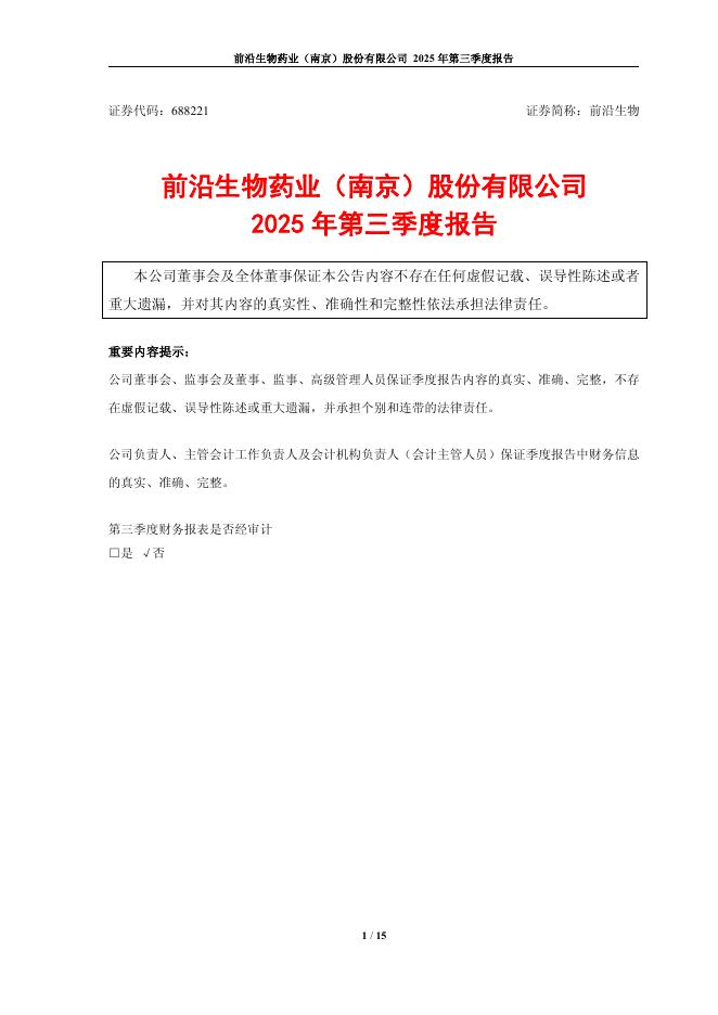 688221-前沿生物:前沿生物2025年第三季度报告.pdf