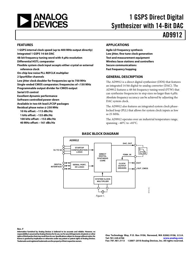 ANALOG DEVICES AD9912 英文产品数据手册 Rev F.pdf