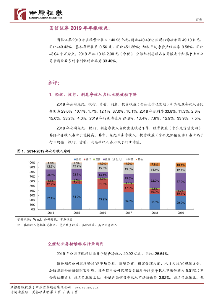 中原证券:国信证券(002736)-2019年年报点评:投资收益、经纪、投行驱动业绩改善.pdf
