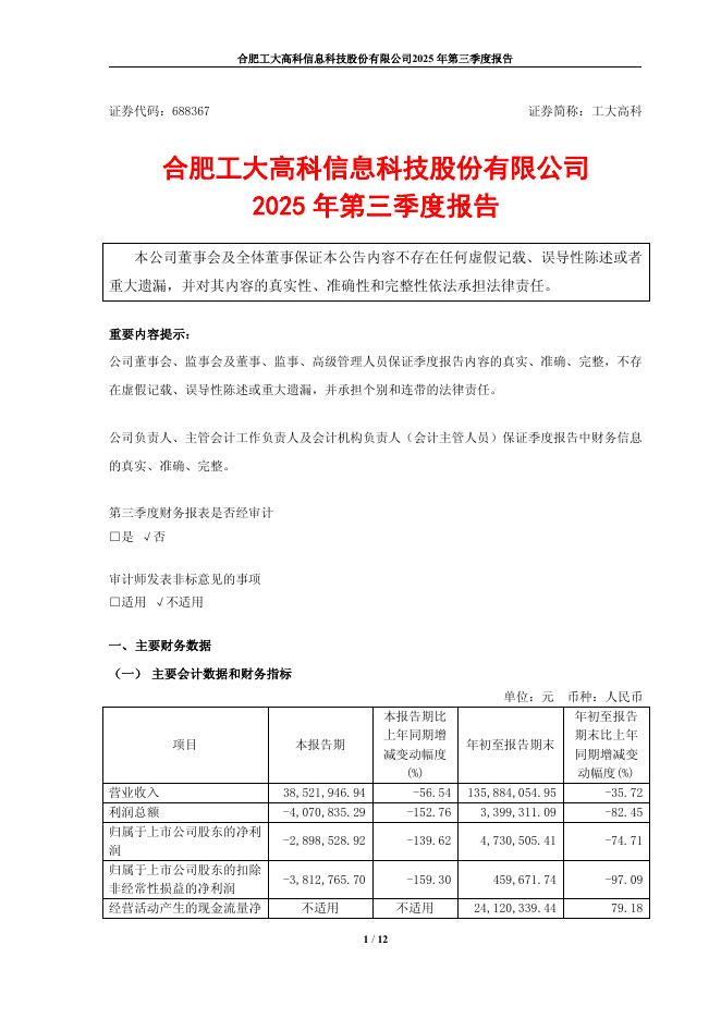 688367-工大高科:工大高科2025年第三季度报告.pdf