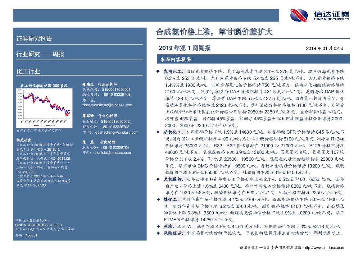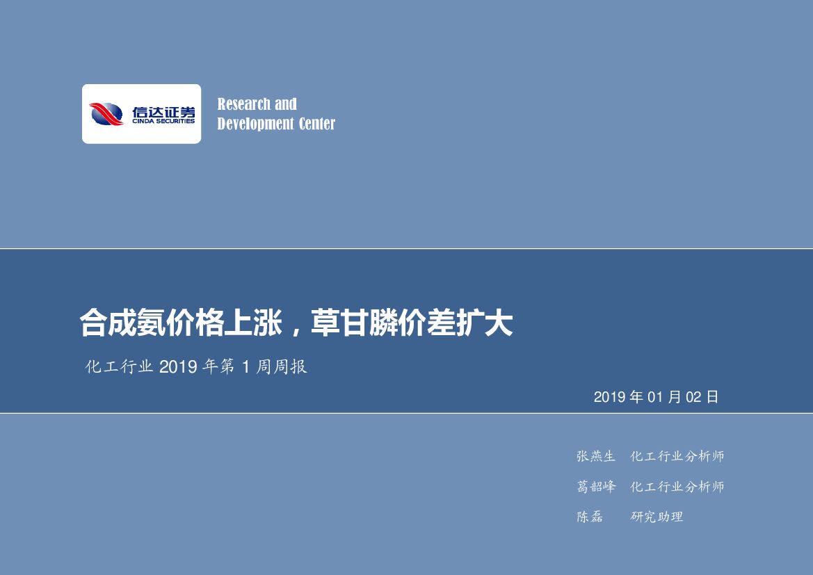 信达证券:化工行业2019年第1周周报:合成氨价格上涨,草甘膦价差扩大.pdf
