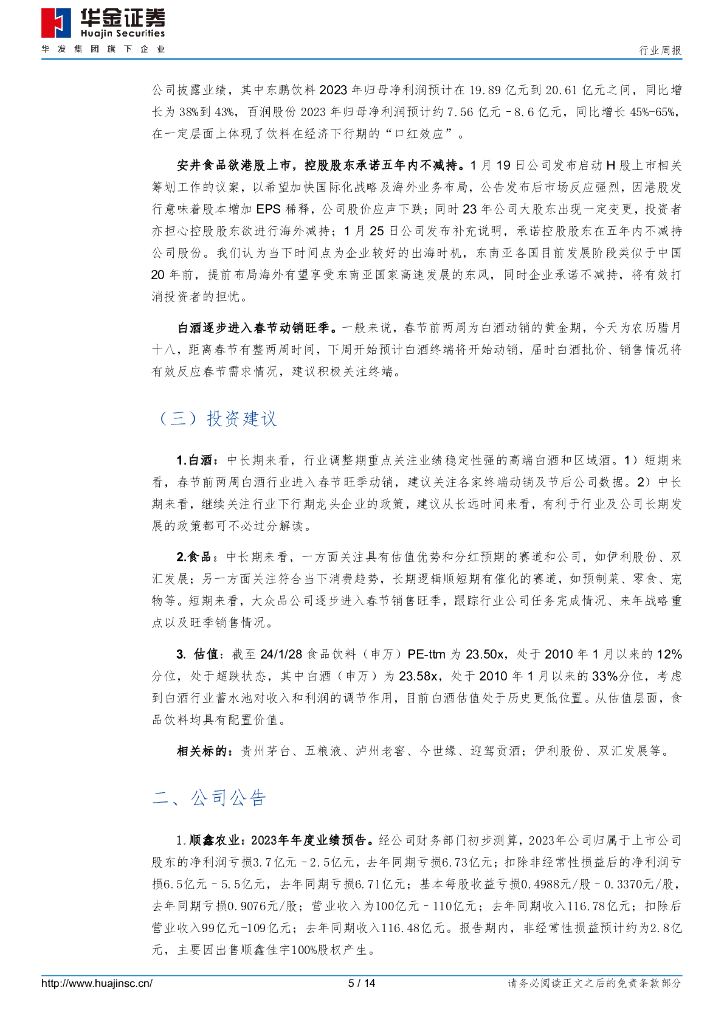 华金证券:食品饮料行业周报:白酒进入动销旺季,多家披露业绩预告.pdf