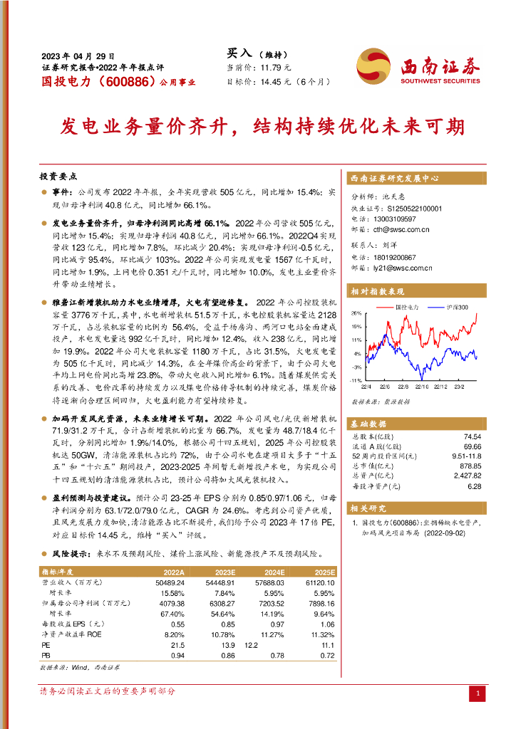 西南证券:国投电力(600886)-发电业务量价齐升,结构持续优化未来可期.pdf