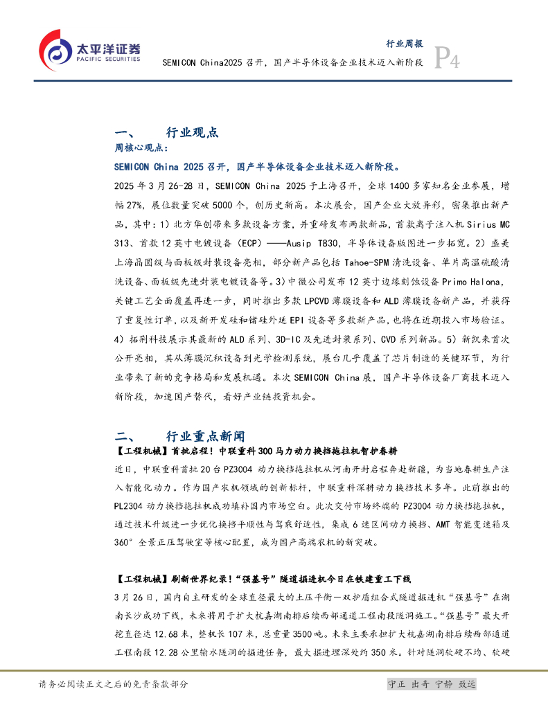 太平洋证券:机械行业周报:SEMICONChina2025召开,国产半导体设备企业技术迈入新阶段.pdf
