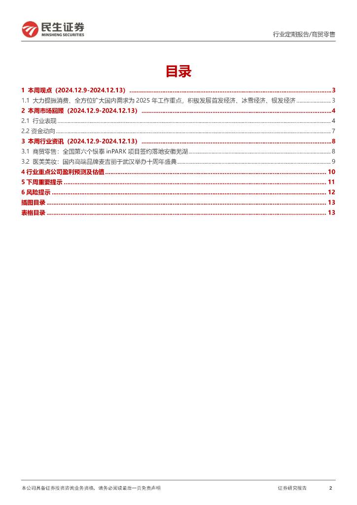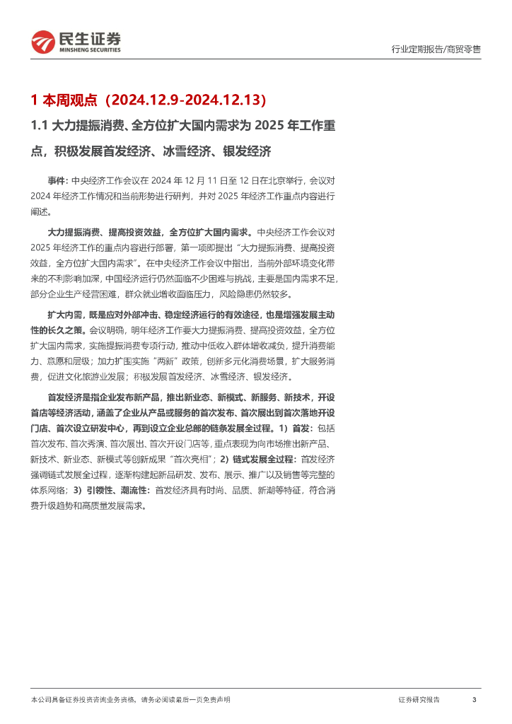 民生证券:零售周观点:大力提振消费、全方位扩大内需为25年工作重点,积极发展首发经济.pdf