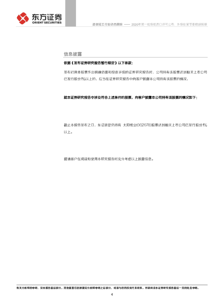 东方证券:造纸轻工行业:2020年第一批废纸进口许可公布,外废收紧节奏略超预期.pdf