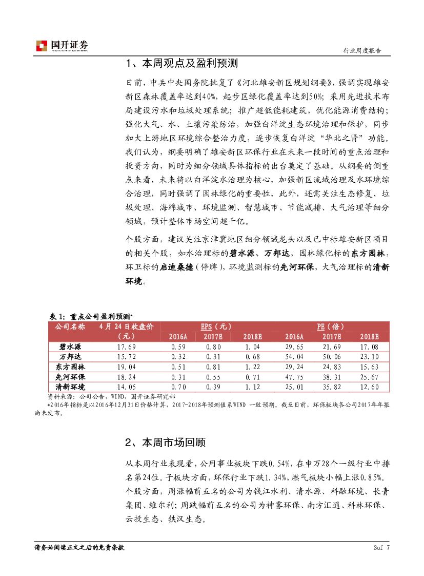 国开证券:环保与公用事业周报:雄安新区规划纲要发布,关注水治理和园林绿化.pdf