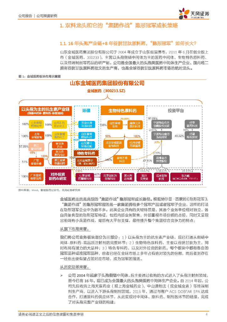 天风证券:金城医药(300233)-头孢&谷胱甘肽双料龙头,集团作战布局亿级蓝海市场.pdf