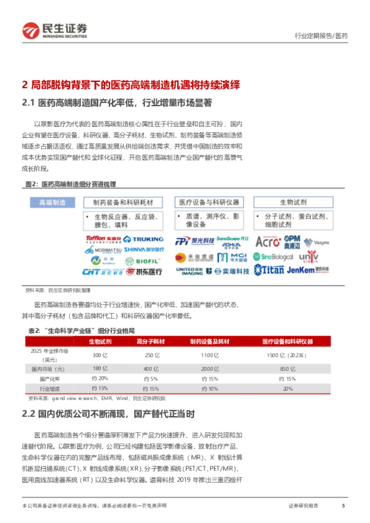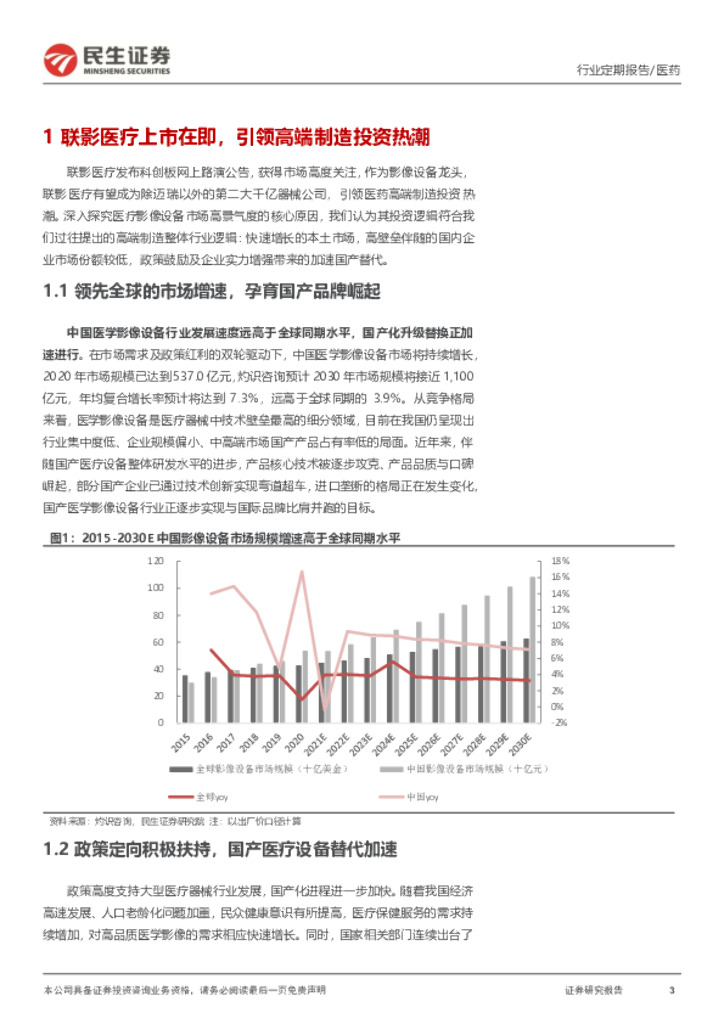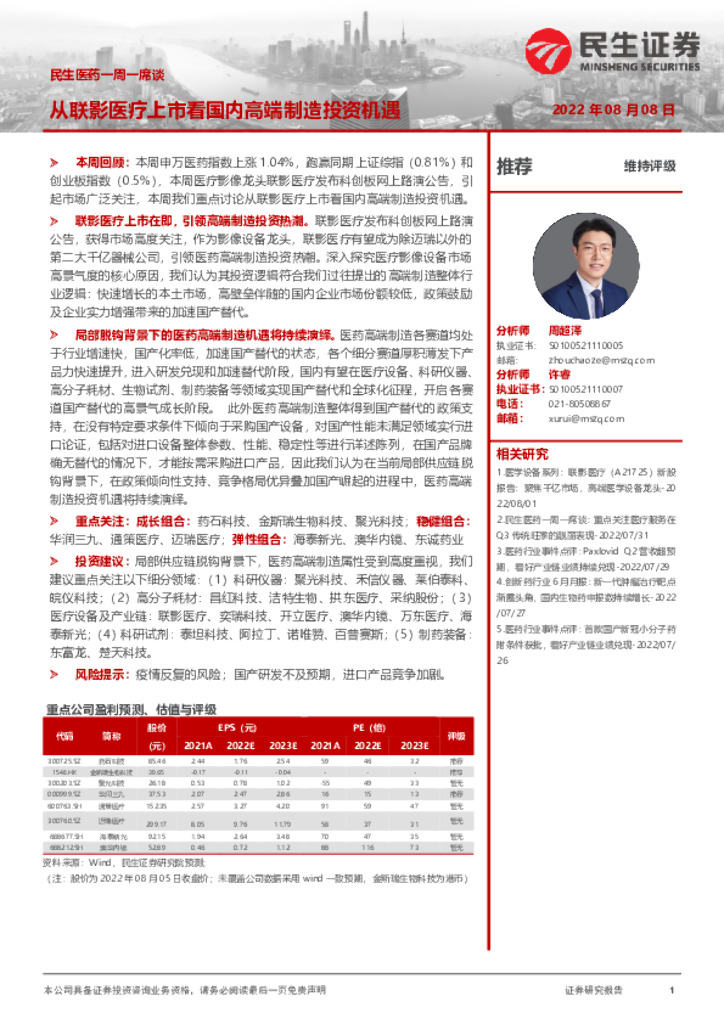 民生证券:民生医药一周一席谈:从联影医疗上市看国内高端制造投资机遇.pdf