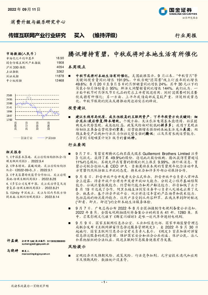 国金证券:传媒互联网产业行业研究:腾讯增持育碧,中秋或将对本地生活有所催化.pdf