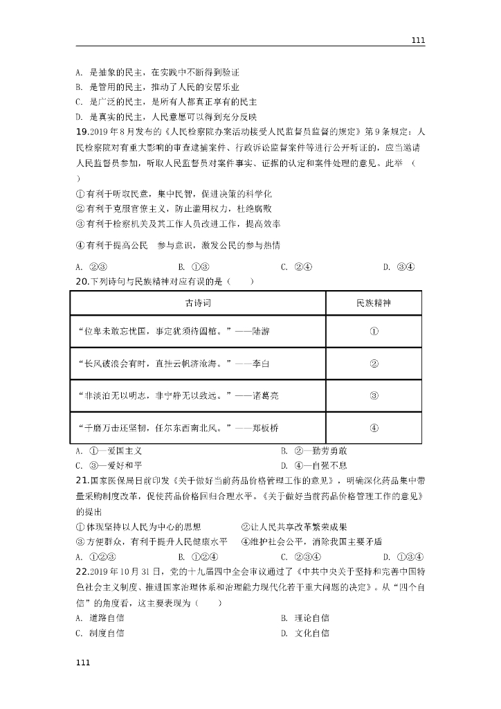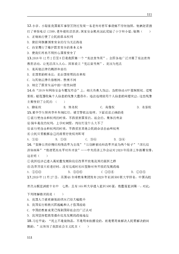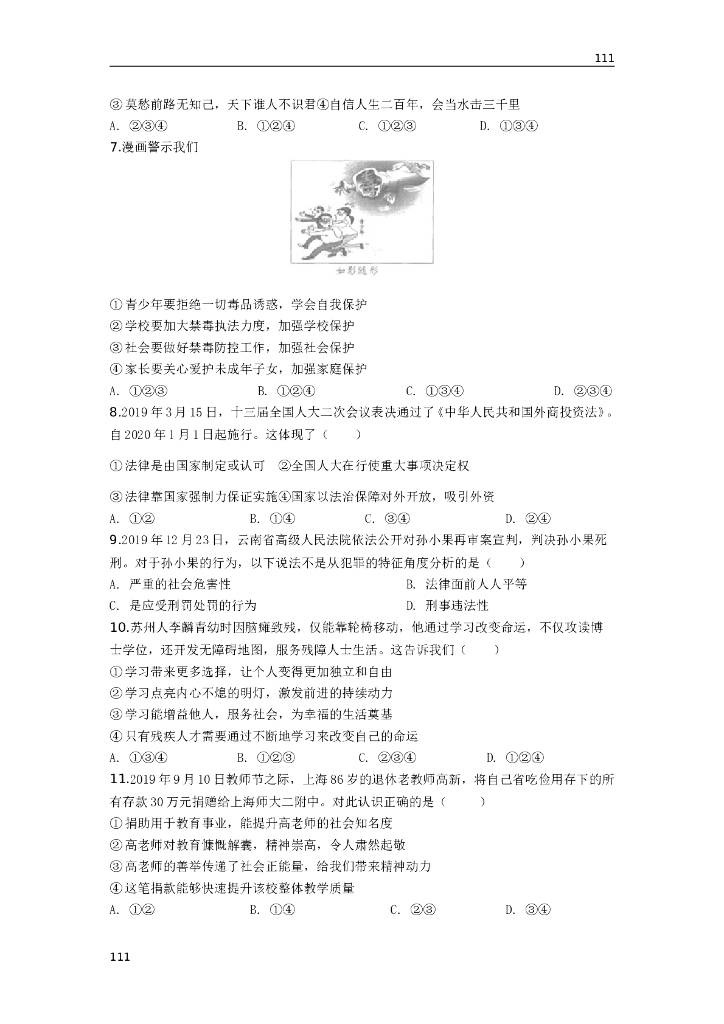 2020年中考道德与法治模拟测试卷(6)及答案附答案.doc