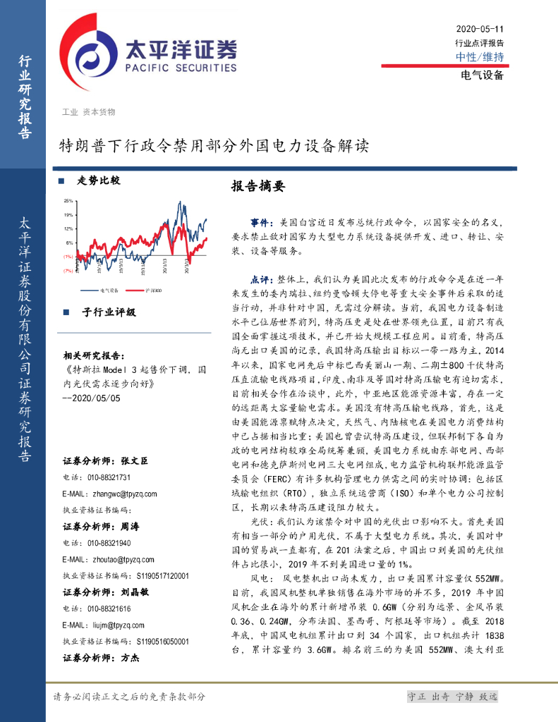 太平洋证券:电气设备行业点评报告:特朗普下行政令禁用部分外国电力设备解读.pdf