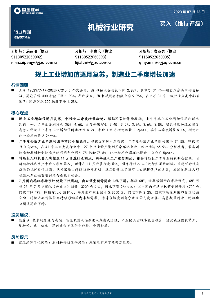 国金证券:机械行业研究:规上工业增加值逐月复苏,制造业二季度增长加速.pdf