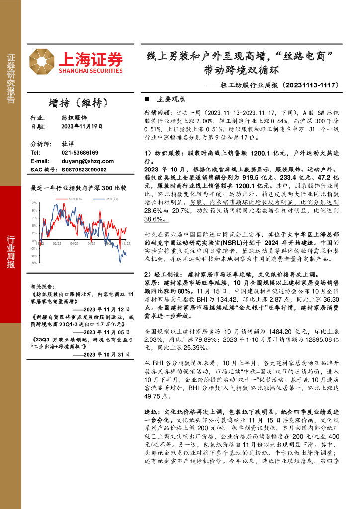 上海证券:轻工纺服行业周报:线上男装和户外呈现高增,“丝路电商”带动跨境双循环.pdf