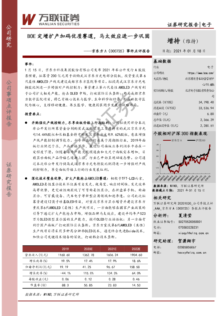 万联证券:京东方A(000725)-事件点评报告:BOE定增扩产加码优质赛道,马太效应进一步巩固.pdf