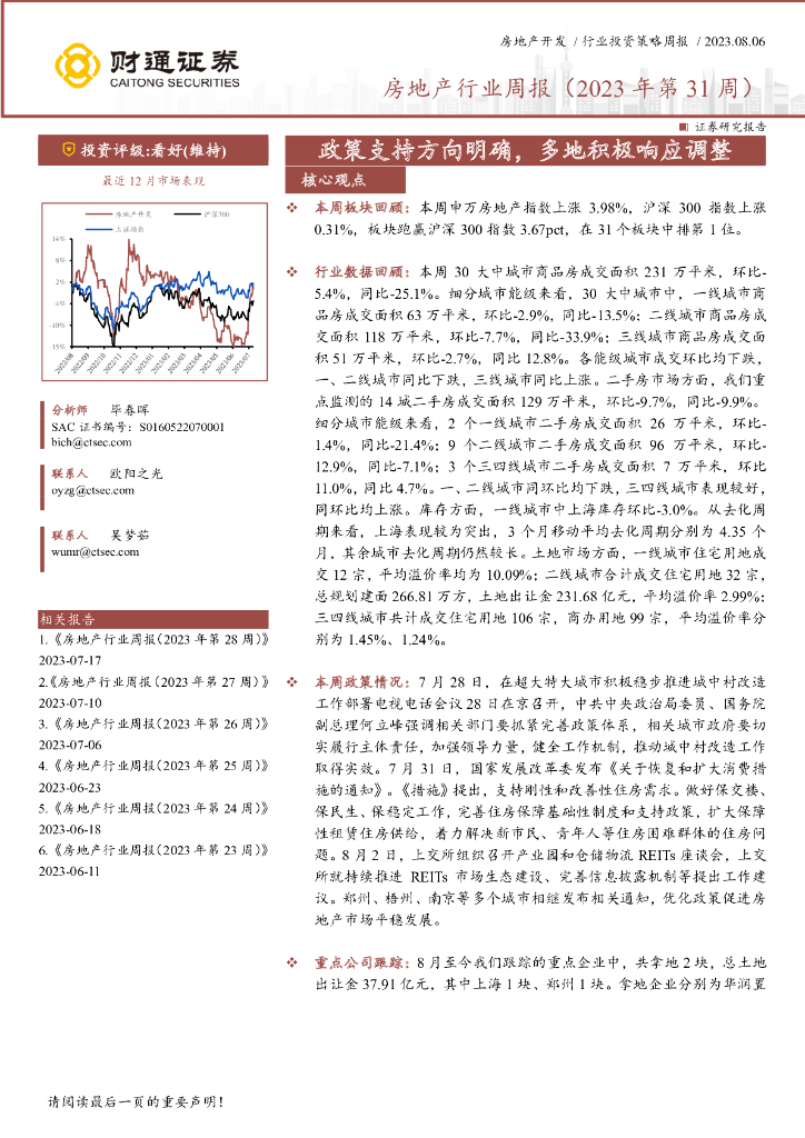 财通证券:房地产行业周报(2023年第31周):政策支持方向明确,多地积极响应调整.pdf