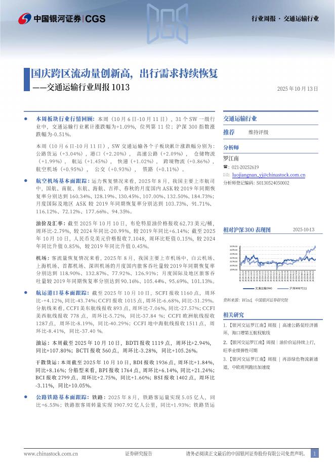中国银河:交通运输行业周报:国庆跨区流动量创新高,出行需求持续恢复.pdf