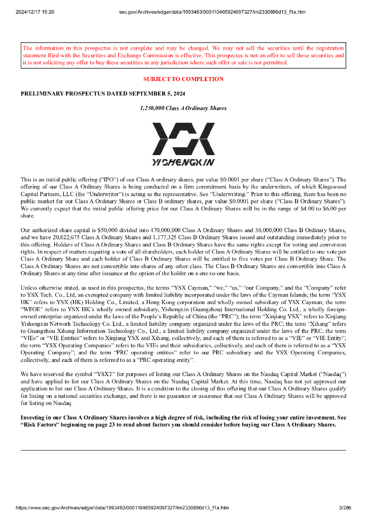 YSX Tech. Co., Ltd美股纳斯达克IPO上市招股说明书.pdf