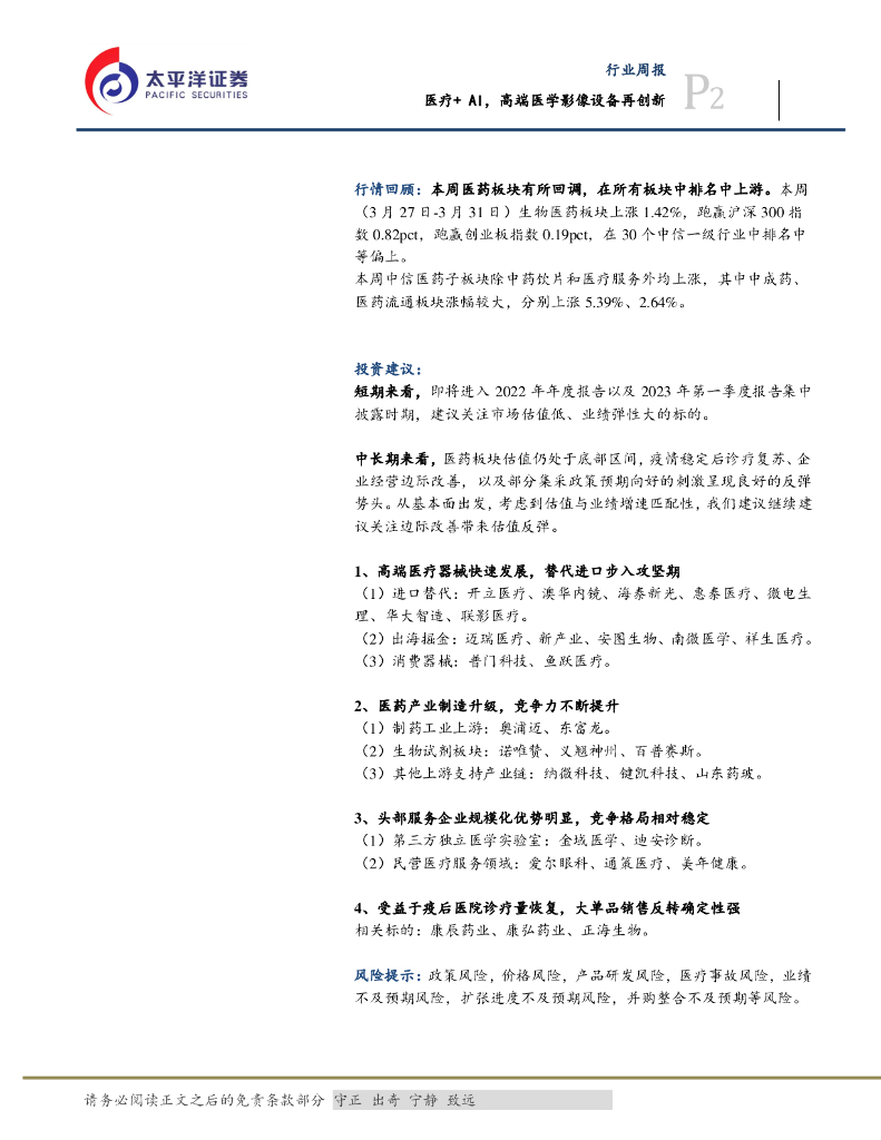 太平洋证券:医药生物行业周报:医疗+AI,高端医学影像设备再创新.pdf