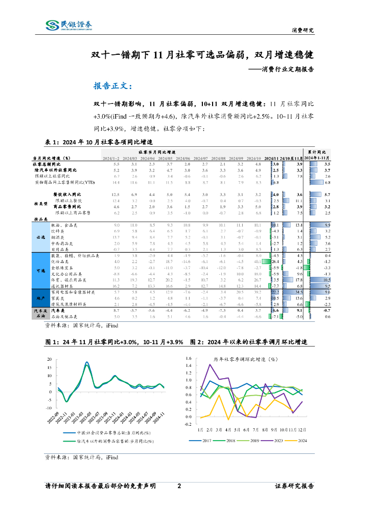 民银证券:消费研究:双十一错期下11月社零可选品偏弱,双月增速稳健.pdf