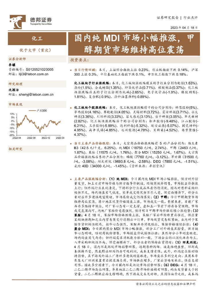 德邦证券:化工行业点评:国内纯MDI市场小幅推涨,甲醇期货市场维持高位震荡.pdf
