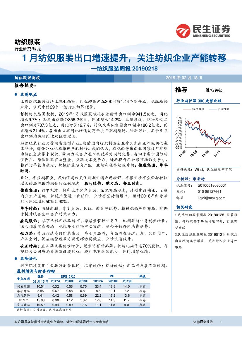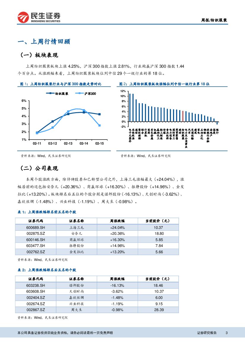 民生证券:纺织服装周报:1月纺织服装出口增速提升,关注纺织企业产能转移.pdf