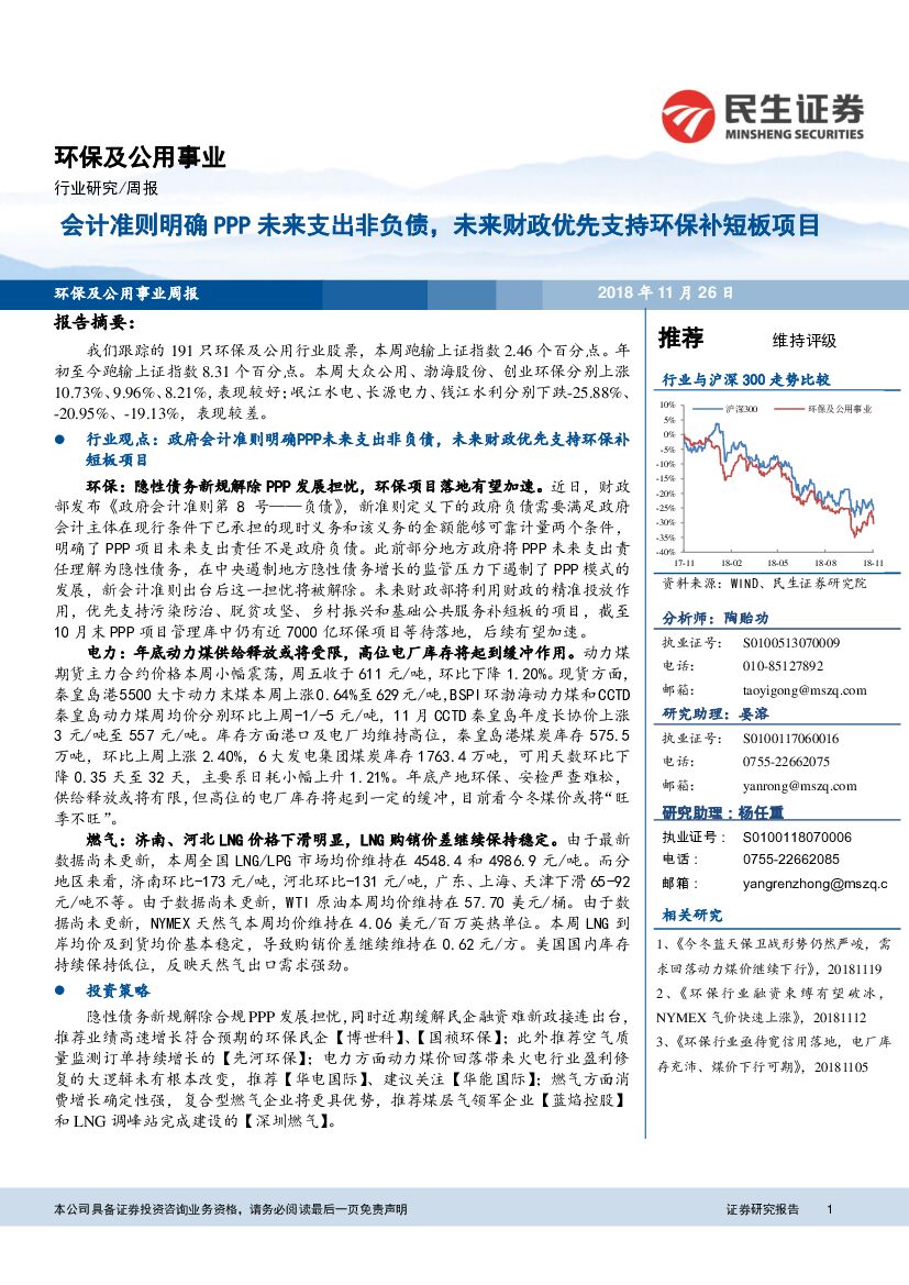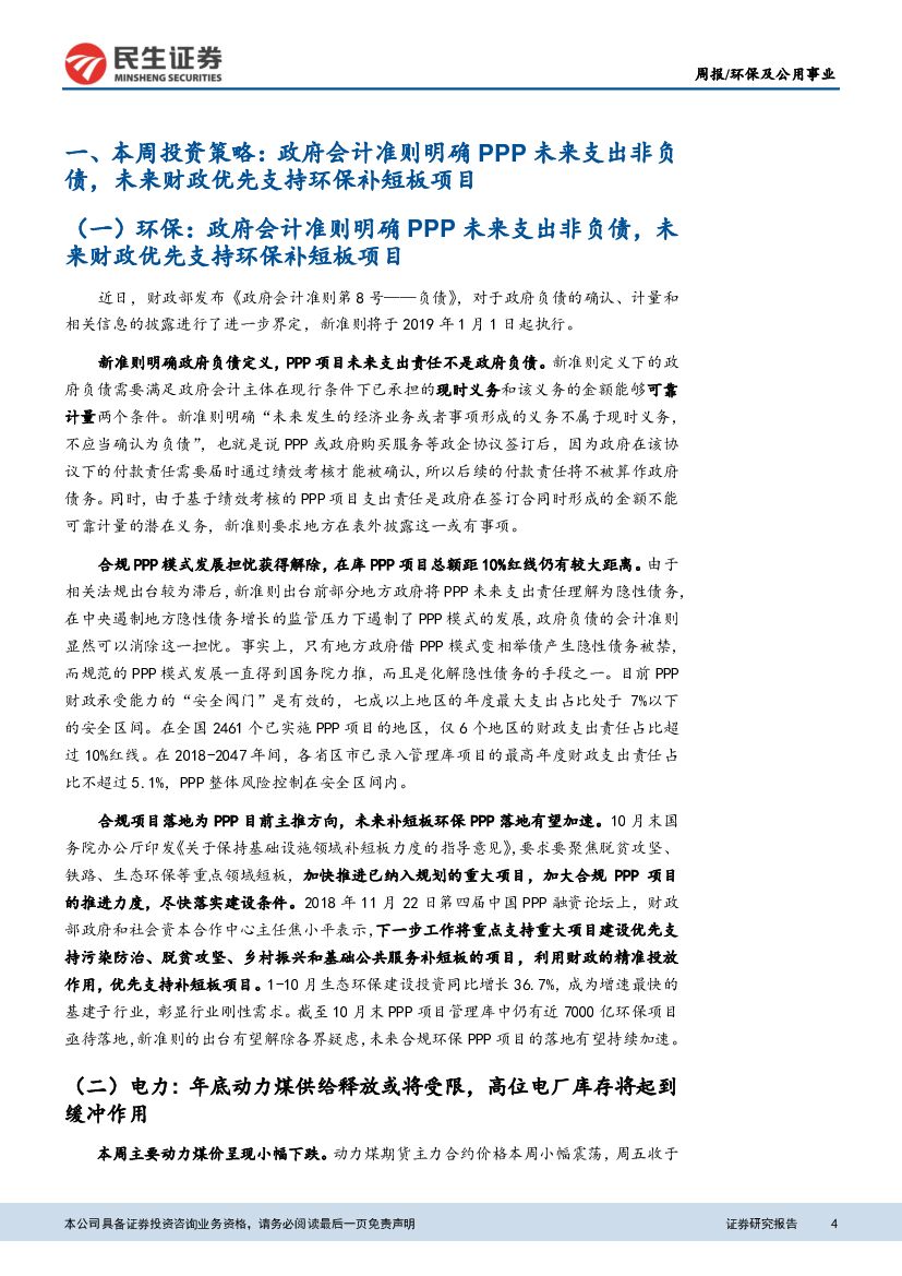 民生证券:环保及公用事业行业研究周报:会计准则明确PPP未来支出非负债,未来财政优先支持环保补短板项目.pdf