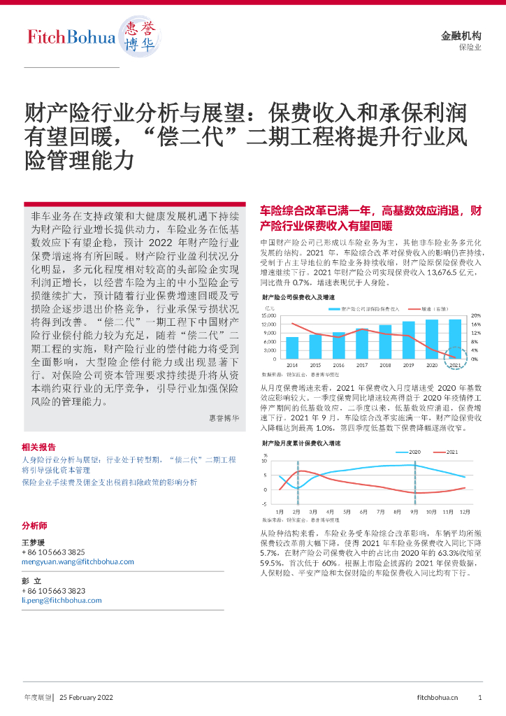 惠誉博华:财产险行业分析与展望:保费收入和承保利润有望回暖,“偿二代”二期工程将提升行业风险管理能力.pdf