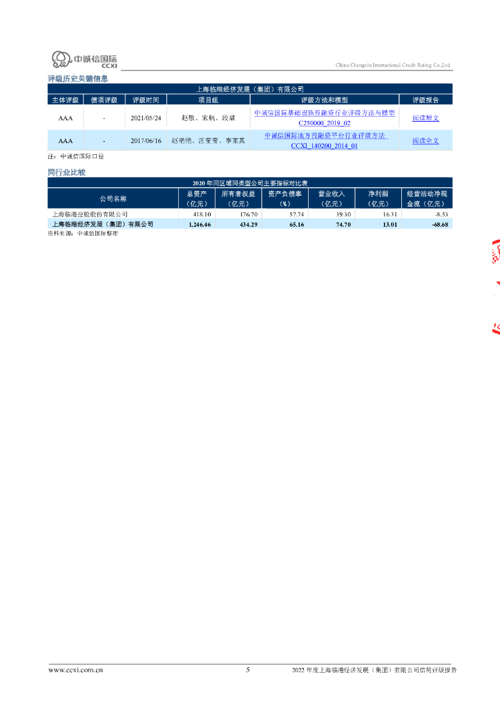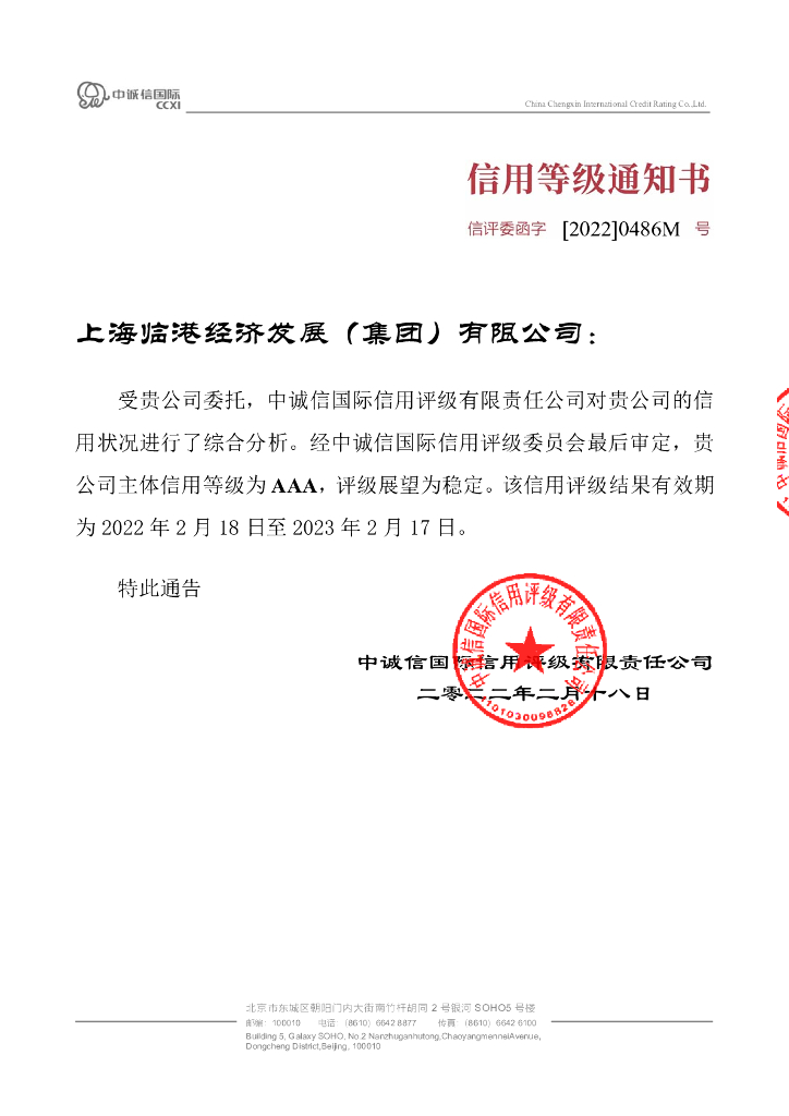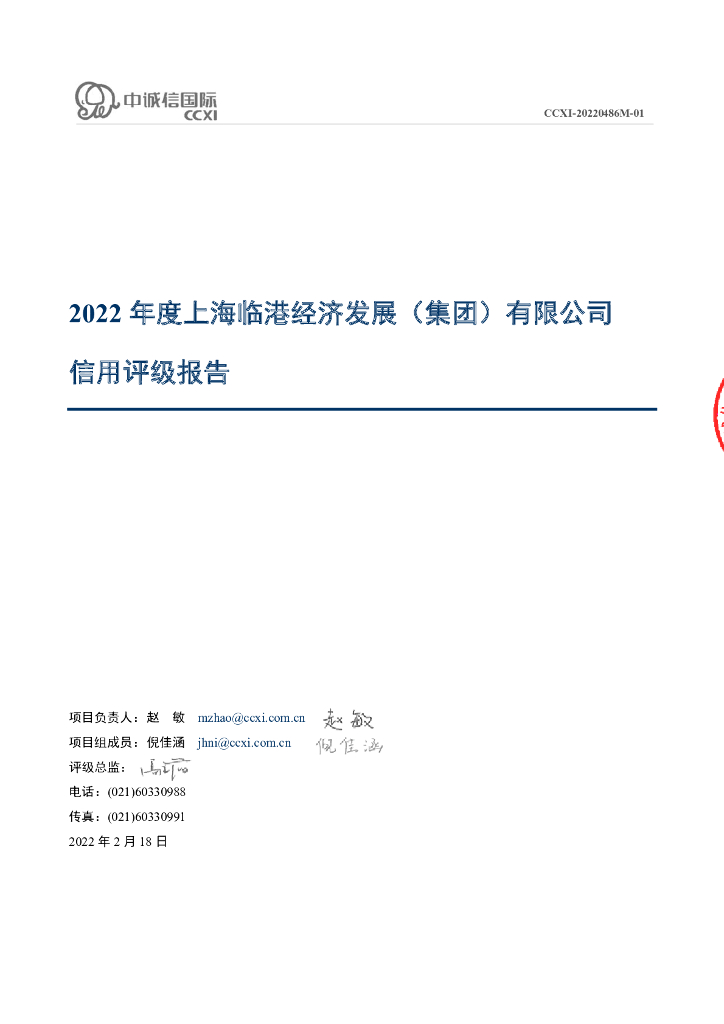 中诚信:2022年度上海临港经济发展(集团)有限公司信用评级报告.pdf