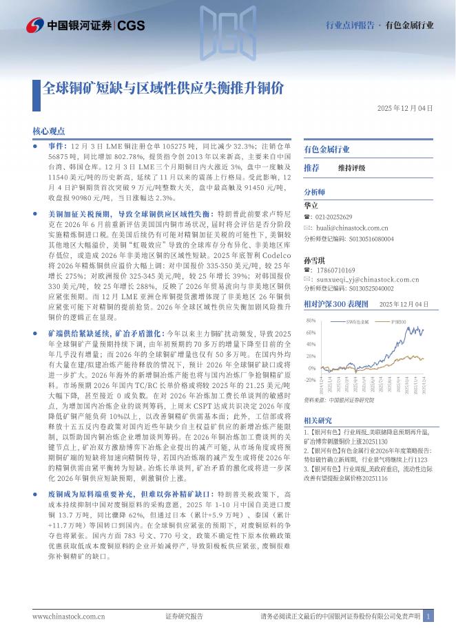 中国银河:有色金属行业行业点评报告:全球铜矿短缺与区域性供应失衡推升铜价.pdf