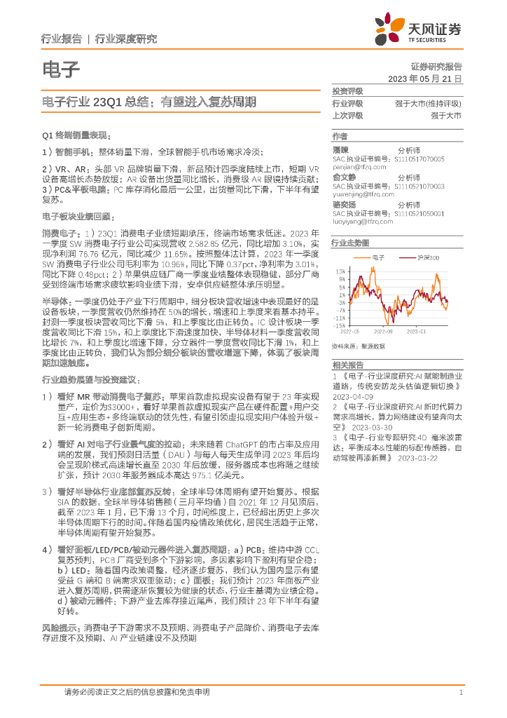 天风证券:电子行业23Q1总结:有望进入复苏周期.pdf