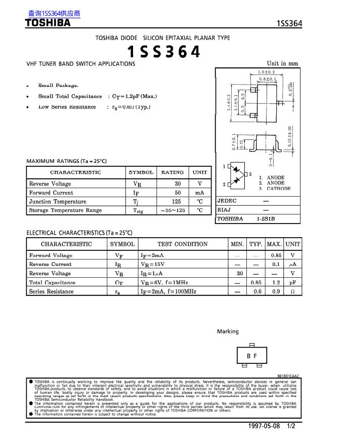 TOSHIBA 1SS364 数据手册.pdf