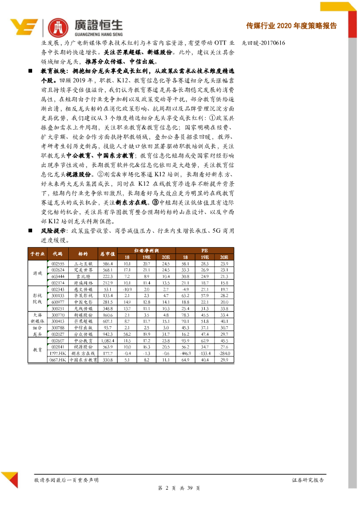 广证恒生证券研究所:传媒行业2020年度策略报告:基本面边际改善,政策端与技术端趋势双提估值与业绩.pdf