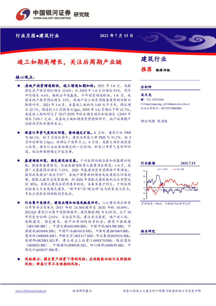 中国银河:建筑行业月报:竣工如期高增长,关注后周期产业链.pdf