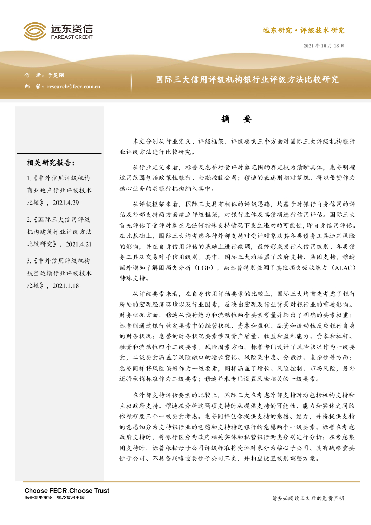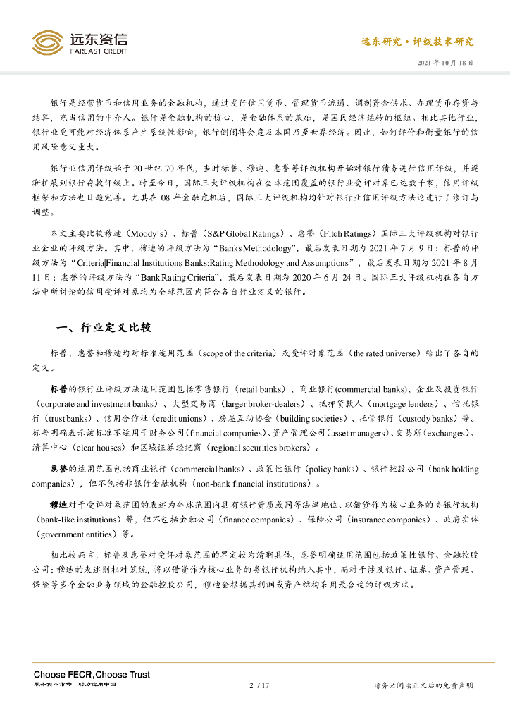 远东资信:国际三大信用评级机构银行业评级方法比较研究报告.pdf