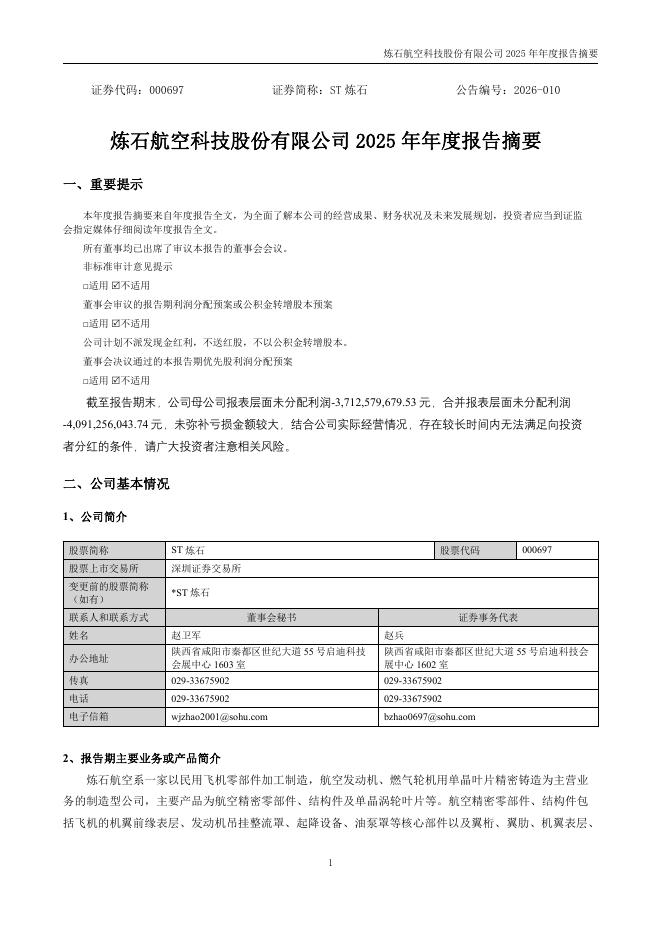 000697-ST炼石:2025年年度报告摘要.pdf