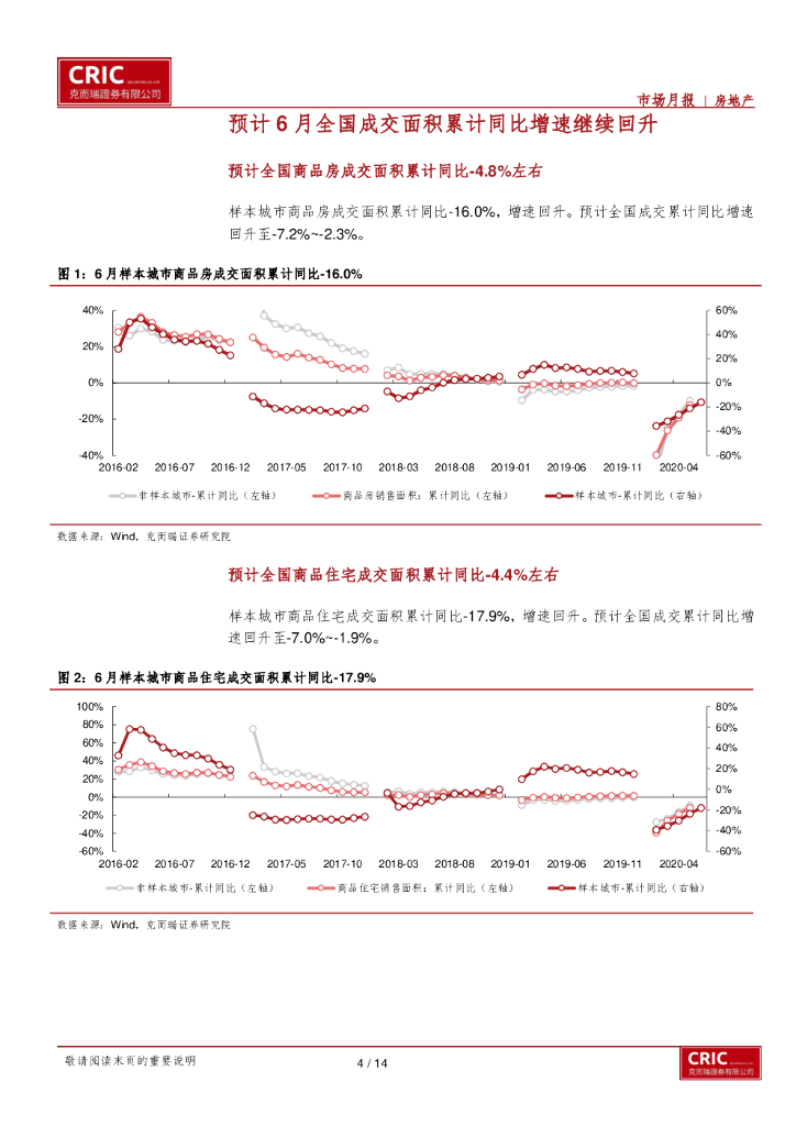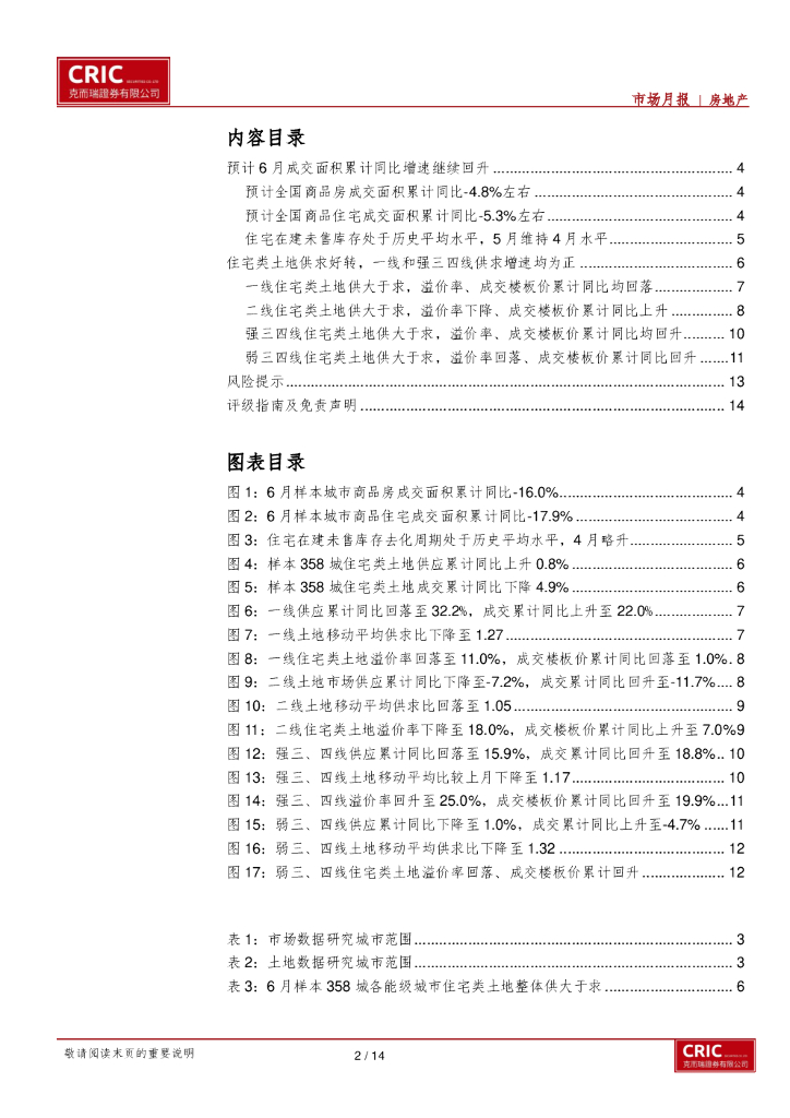 克而瑞证券:全国6月成交面积及市场跟踪:6月全国成交呈现回升的态势,土地供应放缓,成交继续改善,各线城市表现均较好.pdf
