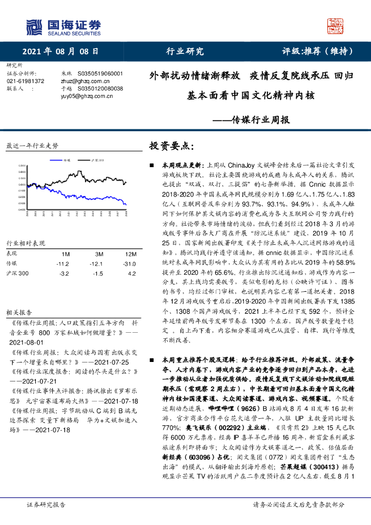 国海证券:传媒行业周报:外部扰动情绪渐释放 疫情反复院线承压 回归基本面看中国文化精神内核.pdf