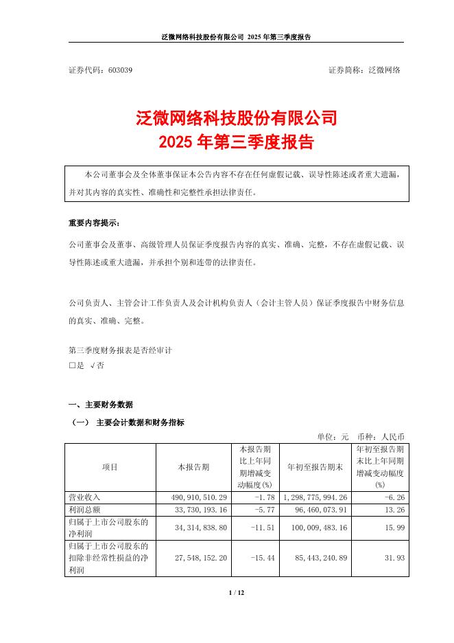 603039-泛微网络:泛微网络2025年第三季度报告.pdf