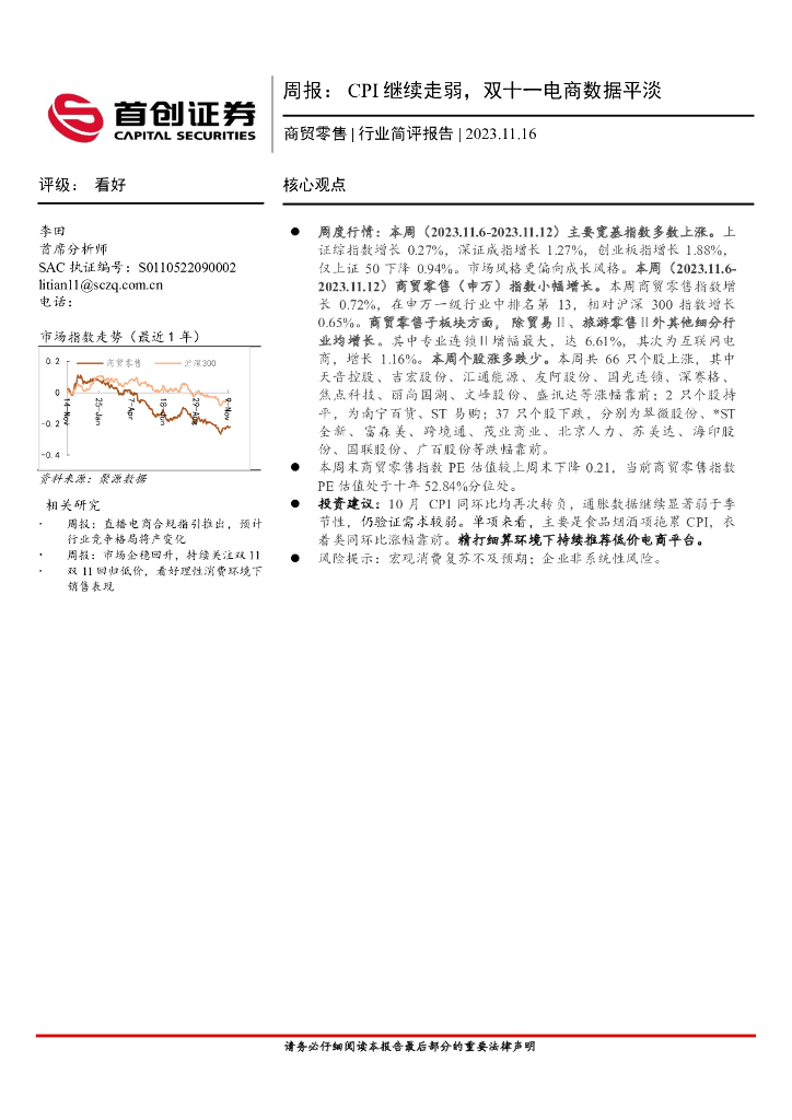 首创证券:商贸零售周报:CPI继续走弱,双十一电商数据平淡.pdf