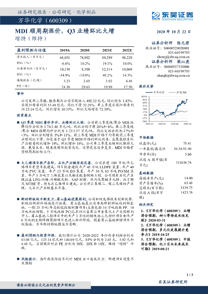 东吴证券:万华化学(600309)-MDI顺周期涨价,Q3业绩环比大增.pdf