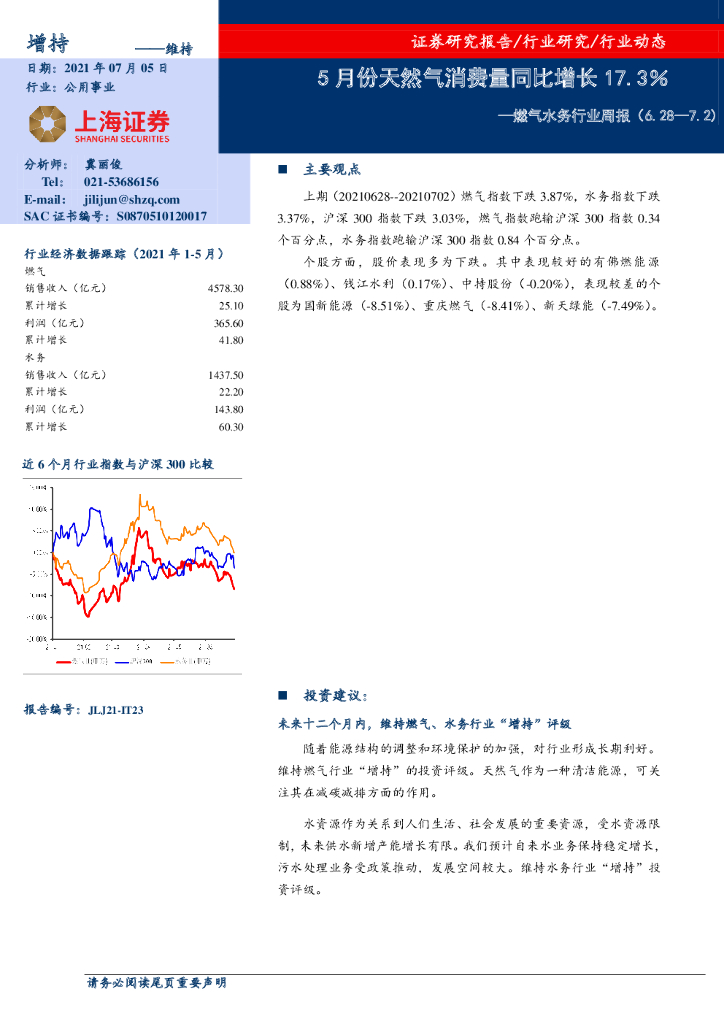 上海证券:燃气水务行业周报:5月份天然气消费量同比增长17.3%.pdf