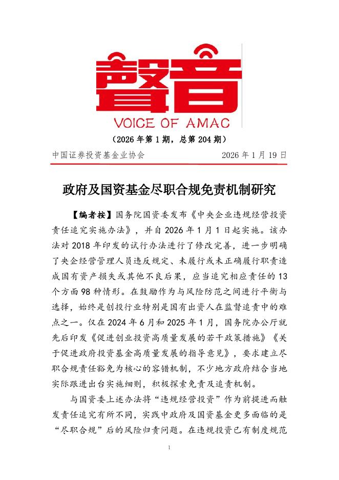 中国证券投资基金业协会:《声音》2026年第1期-政府及国资基金尽职合规免责机制研究.pdf