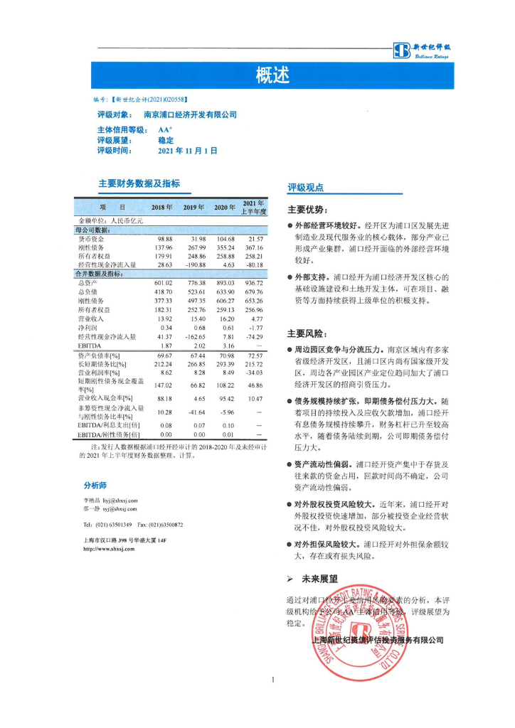 新世纪:南京浦口经济开发有限公司主体信用评级报告.pdf