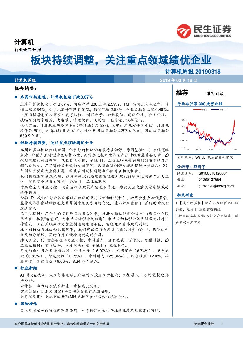 民生证券:计算机周报:板块持续调整,关注重点领域绩优企业.pdf