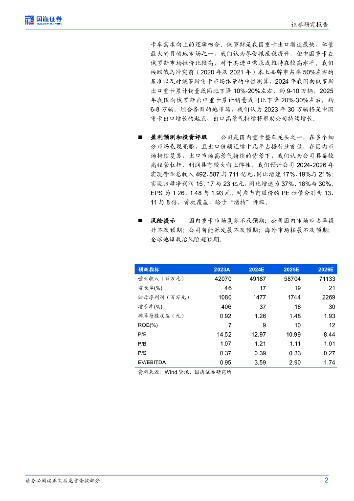 国海证券:中国重汽(000951)-2024年三季报点评:2024年Q3毛利率同比提升,经营杠杆助公司Q3扣非归母净利润同比高增87.8%.pdf