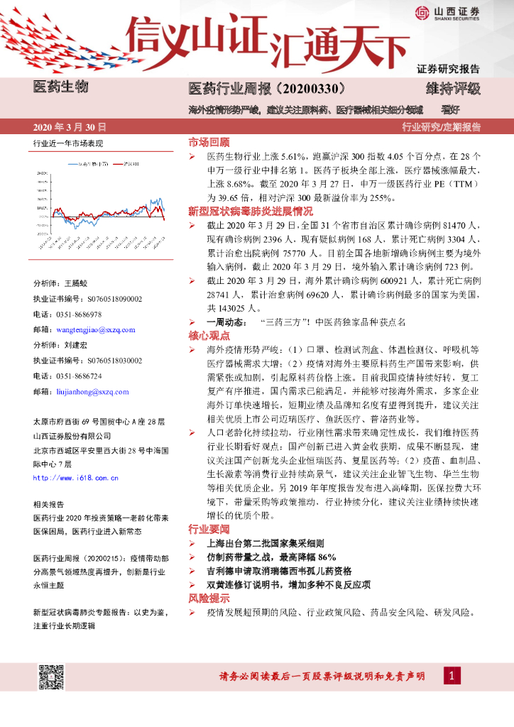 山西证券:医药行业周报:海外疫情形势严峻,建议关注原料药、医疗器械相关细分领域.pdf