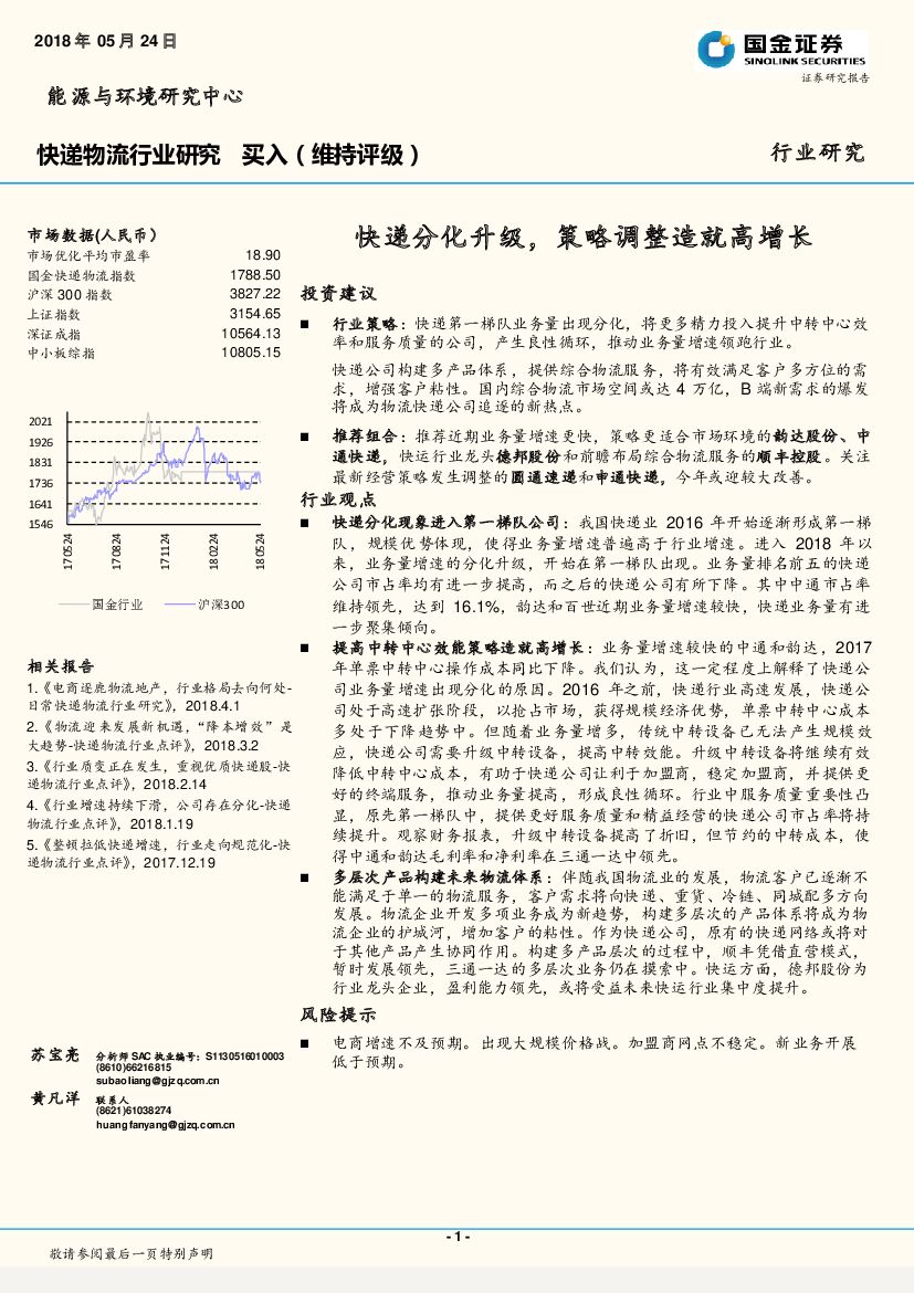 国金证券:快递物流行业研究:快递分化升级,策略调整造就高增长.pdf